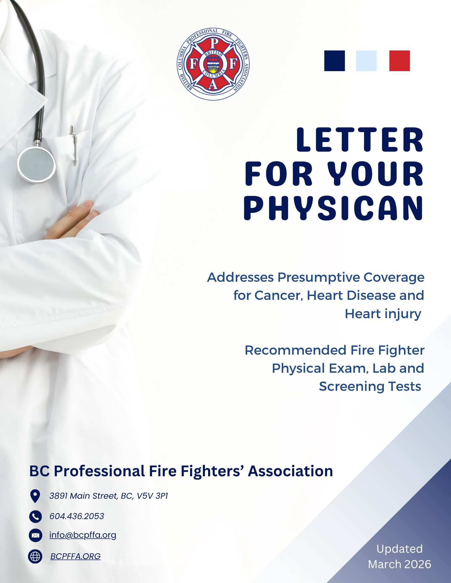 If a fire fighter develops an occupational disease/injury listed in the Fire Fighters' Occupational Disease Regulation, has worked as a fire fighter for the minimum cumulative period, and has been regularly exposed to the hazards of a fire scene other than a forest fire, the diagnosed disease/illness is presumed to be caused by the worker's employment. A compensation claim would then be covered by WorkSafeBC, unless the contrary was proven. The following cancer/illness types currently covered under BC presumptive legislation.