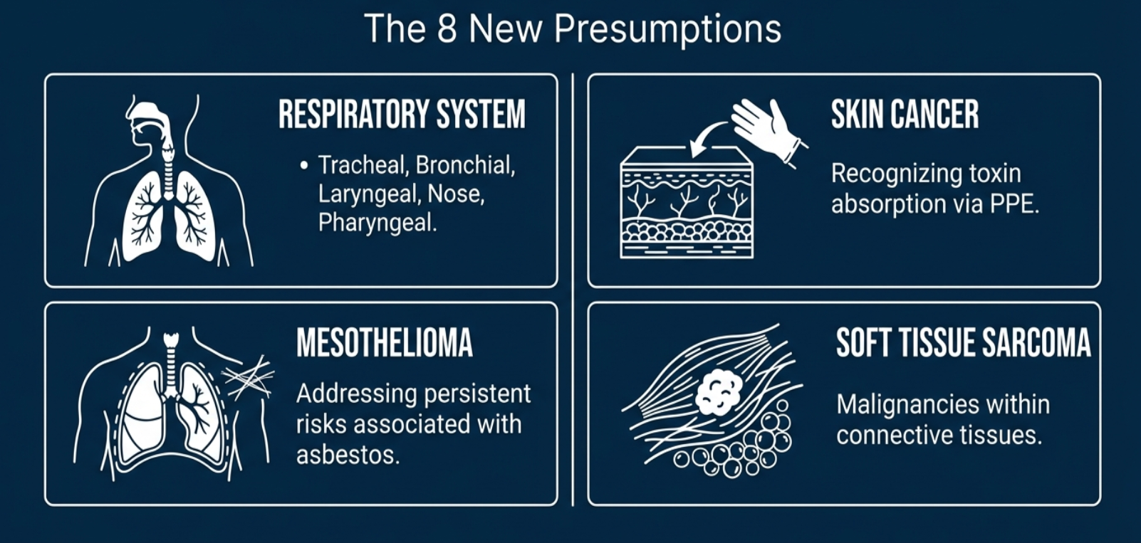 We remain steadfast in our commitment to expanding presumptive protections. Our priorities include securing further coverage ie. all female reproductive and digestive systems, as well as reducing cumulative service periods based on the latest scientific data. We aim to achieve the bipartisan commitments: presumptive coverage for all cancer forms with minimal service requirements.